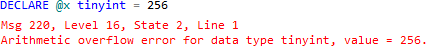Beim Umgang mit unterschiedlichen numerischen Datentypen muss man einen möglichen Überlauf, Rundungsdifferenzen und ein paar Eigenheiten im Auge behalten. Im Normalfall erzeugt ein Überlauf einen Fehler (Abb. 1) und ein Verlust an Genauigkeit wird gerundet (Abb. 2), aber es gibt Ausnahmen. So werden bei der Umwandlung von real und float in eine Ganzzahl die Dezimalstellen abgeschnitten (Abb. 3) und bei der Umwandlung in decimal wird ein Wert kleiner als 5 * 10e18 zu 0.