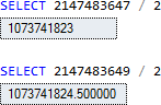 Nicht ganz intuitiv ist außerdem das Verhalten von decimal-Werten, bei denen die Nachkommastellen (Scale) gerundet werden, bevor die Gesamtlänge (Precision) geprüft wird (Abb. 4). Kurios ist auch, dass Integer-Konstanten größer als 2.147.483.647 implizit nicht zu bigint, sondern zu decimal konvertiert werden (Abb. 5).