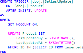 Trigger sind gespeicherte Prozeduren, die bei bestimmten Tabellenereignissen (INSERT, UPDATE, DELETE) ausgeführt werden. Innerhalb eines Triggers ist es möglich, auf die ursprünglichen und geänderten Daten zuzugreifen und darauf zu reagieren.